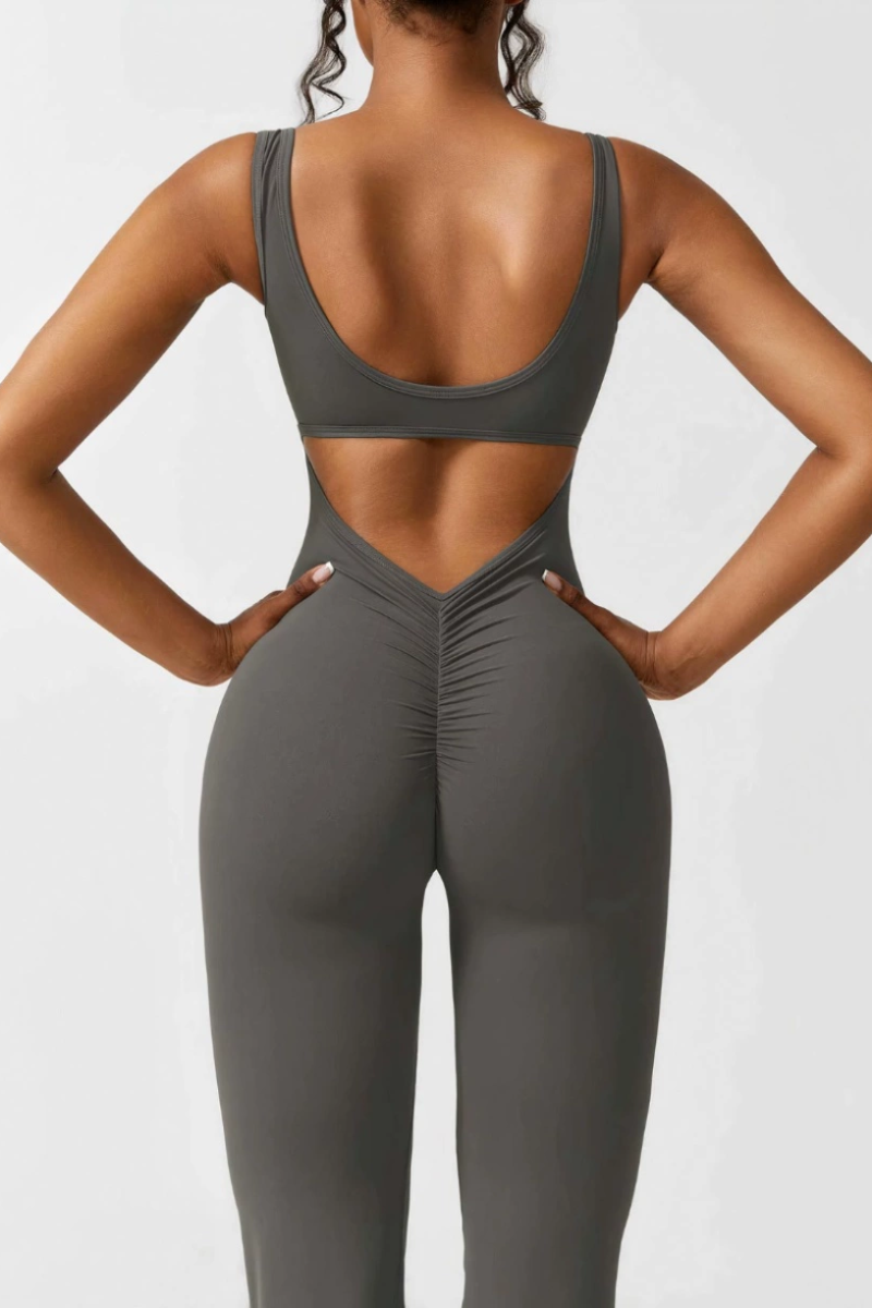 - Modernes Design: Schlichter, einfarbiger Einteiler in elegantem Grau, der eine schlanke Silhouette betont
