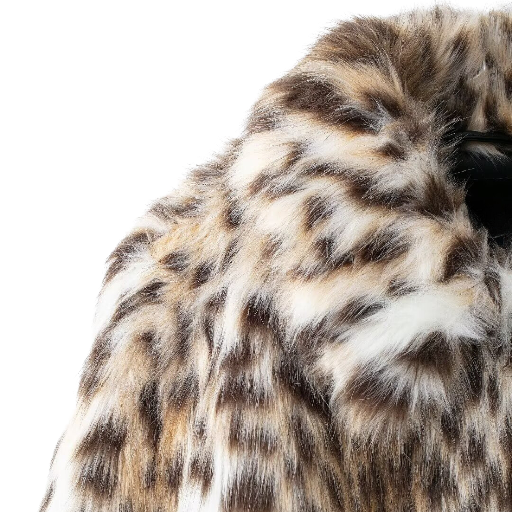 Luxuriöser Faux-Fur Mantel mit Leopardenmuster und kurzem Schnitt