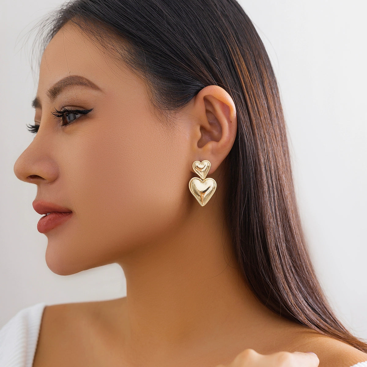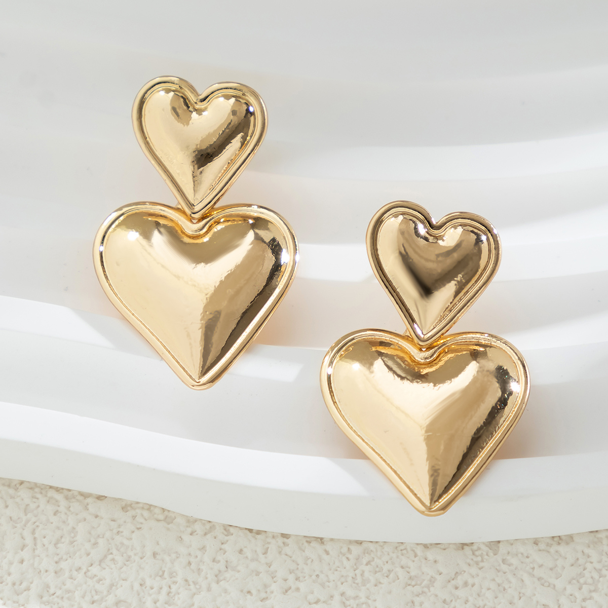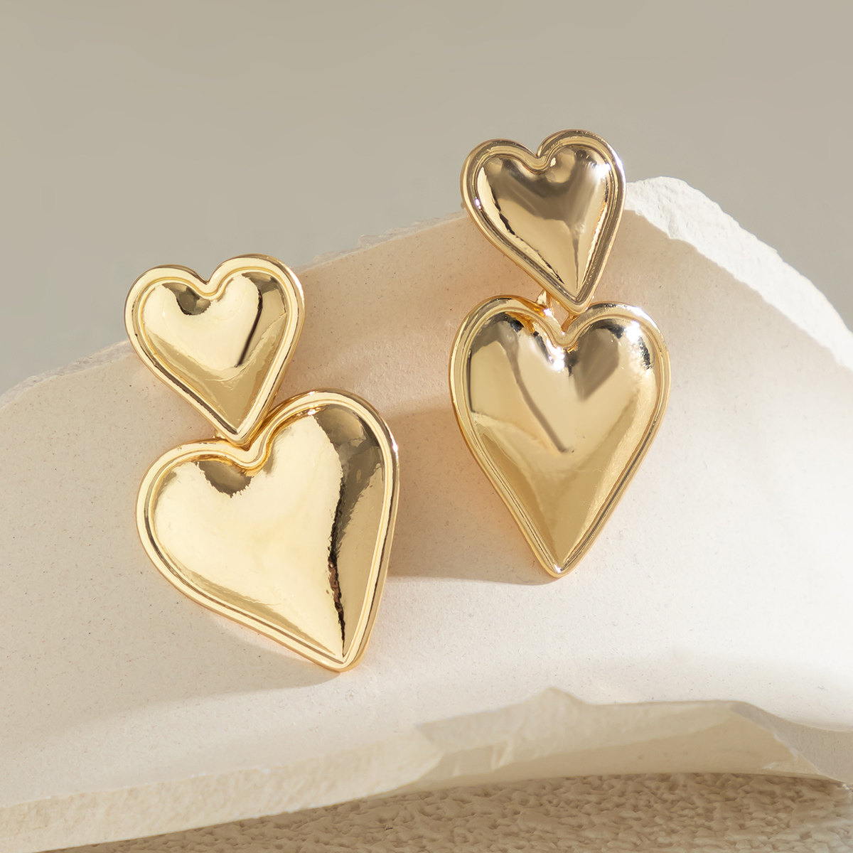 Vergoldete Herz-Ohrringe im Doppel-Design